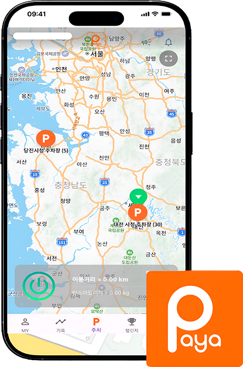 앱에 실시간 배터리용량, 평균 속도, 이동경로 등의 주행 기록이 표시되며 탄소저감 마일리지를 확인 가능합니다.